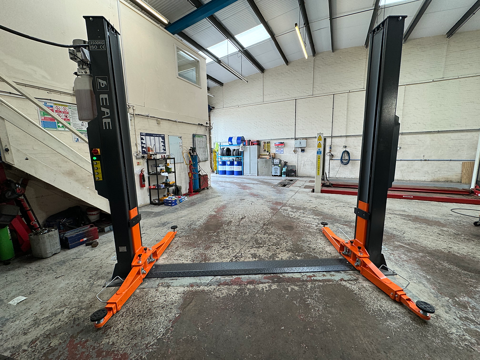 Took out an old 2 post lift and replaced it with our new EAE62B 3.5t 2 post lift.